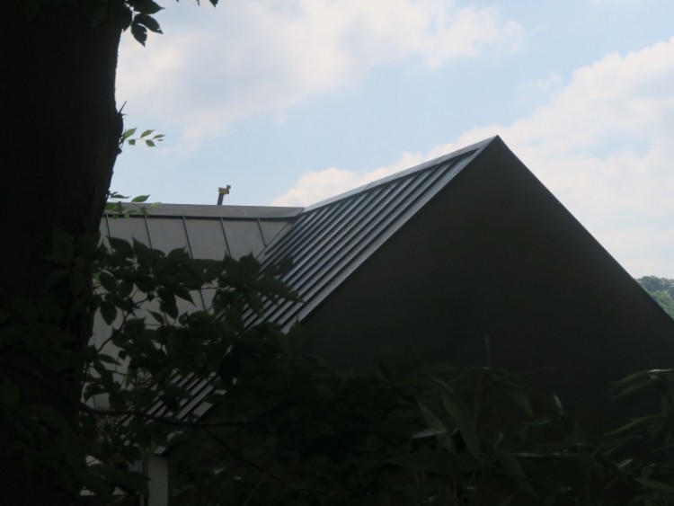 그러나, 이 주택의 도면을 보면 거멀접기 밑에 투습방수층이 있고, 그 하부에는 방수층이 존재하지 않습니다. 이 이야기는 역류하는 빗물에 대한 대응 능력이 없다는 뜻입니다.