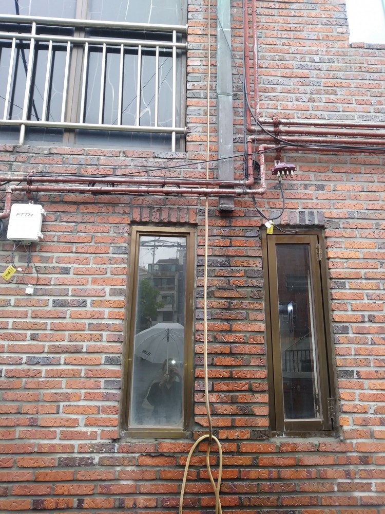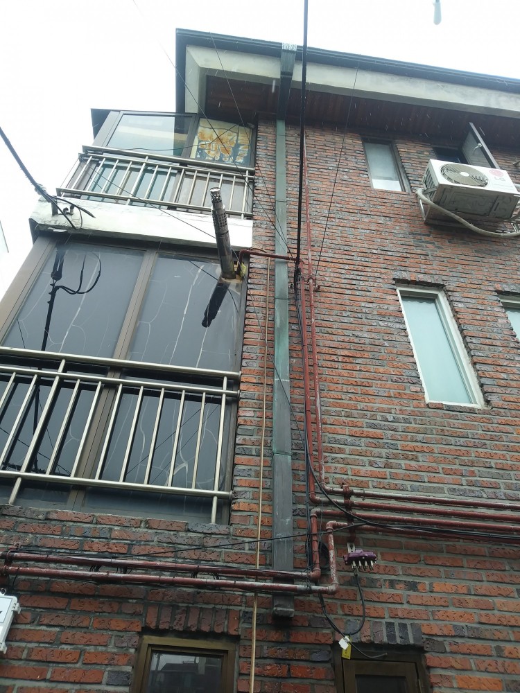 1. 옥상에서부터 내려오는 빗물 배수관이 바닥까지 가기 전에 끊겨 있어