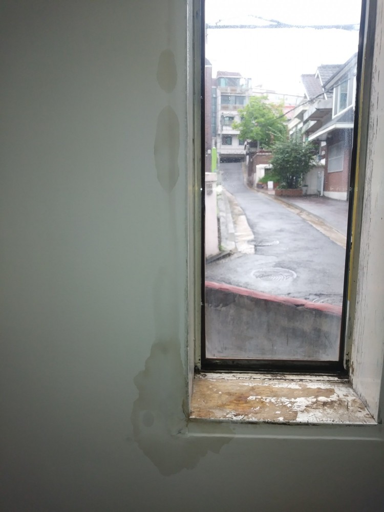 이사와서 시작된 장마 때문에 이제야 창문틈에 물이 새는걸 발견했어요