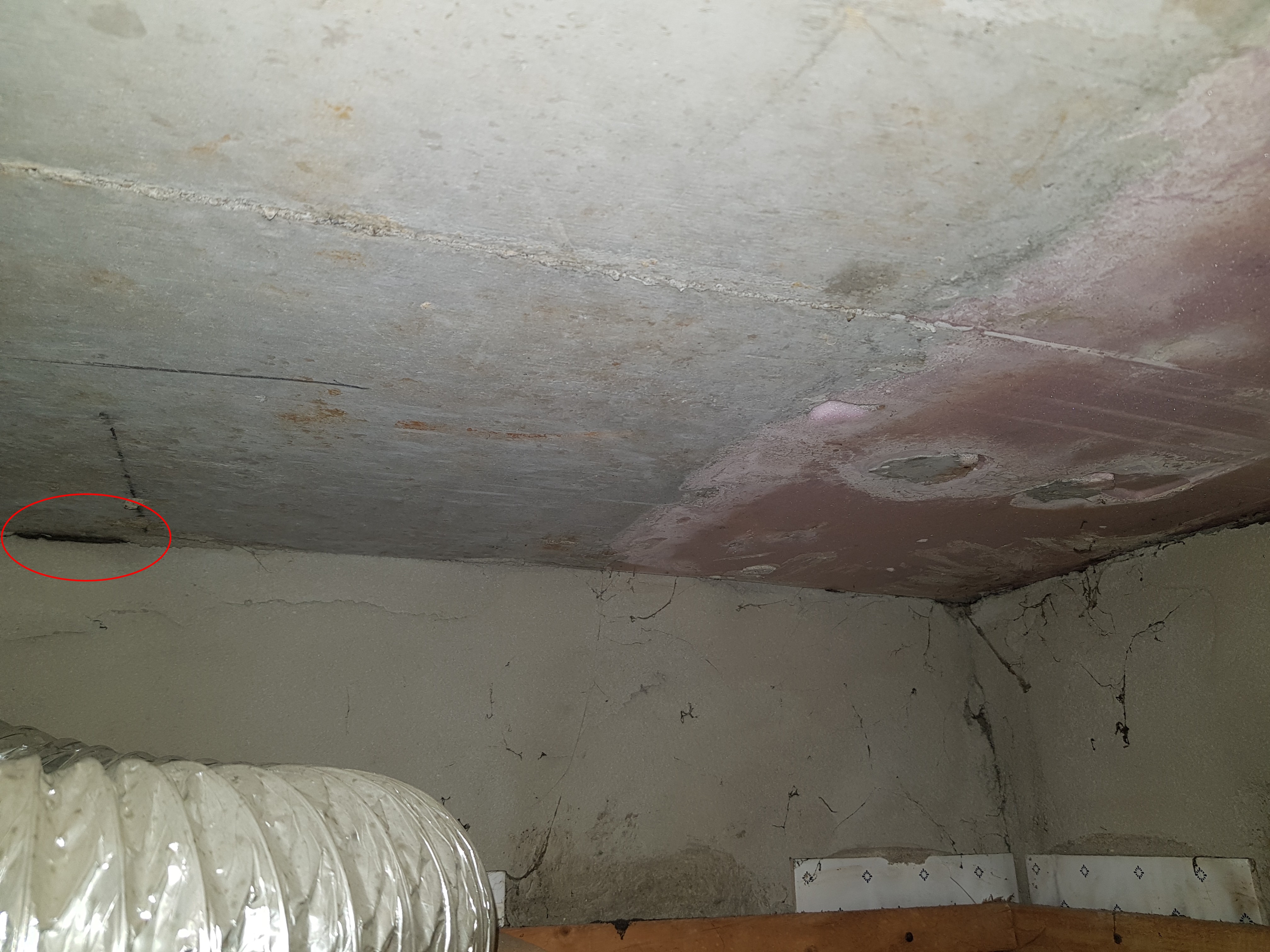 누수가 되는 벽면의 일부를 수직의 선형으로 깨서 보는 것이 유일한 남은 방법같습니다. 이 까서 본다는 의미는.. 누수를 해결하기 위한 행위라기 보다는.. 누수가 위에서 부터 내려온 물인지에 대한 확신을 가지기 위함입니다.