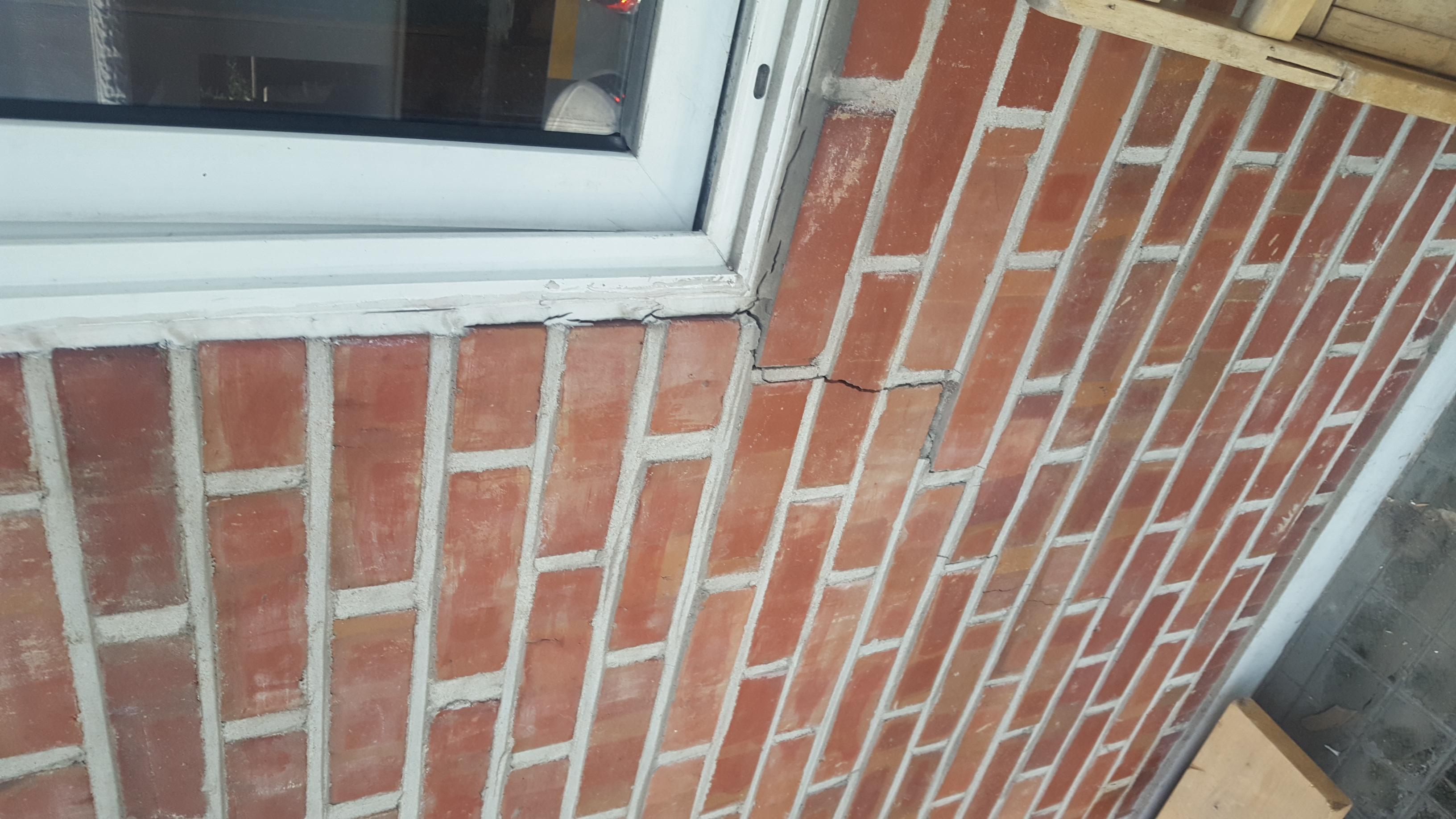 이건 마감재의 균열이며, 당장 문제가 되지는 않겠지만 보수를 하긴 해야 합니다. 무너지는 것은 나중의 일이고, 지금은 균열(특히 창호주변)으로 누수가 생기기 때문에, 실내에 영향을 미칠 수가 있기 때문입니다. 동네 수리가게에서는 실리콘 바르고 끝내겠지만, 그렇게 해서는 내년, 또 후년, 또 그 후년.. 그런 식으로 계속 실리콘을 발라야 하니까요. 원천적으로 보수를 하면 좋겠지만, 그러면 비용이 너무 많이드니.. 에폭시 주입공법으로 균열 부위를 메워야 할 것 같습니다. 그 전이라도 당장 목요일부터 장마가 시작되니.. 창문 주변의 실리콘 시공이라도 임시 방편으로 해주시는 것이 좋겠습니다.