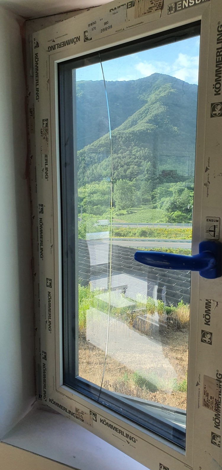 최근 가족끼리 페인트 작업 중인데 뜬금없이 여닫이 창이 깨졌습니다.
