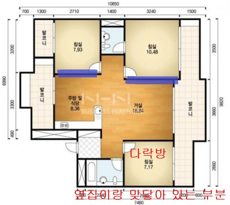 도면을 보니 순간 저 두 방 사이에 화장실이 있는게 보이더라구요.