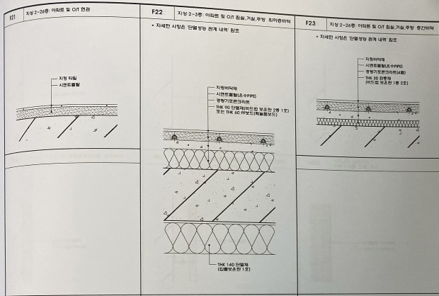 1. 층간소음완충재(30mm) 사이 사이로 기포콘크리트가 새어 들어가서, 상부 충격음을 걸러 주지 못한 경우