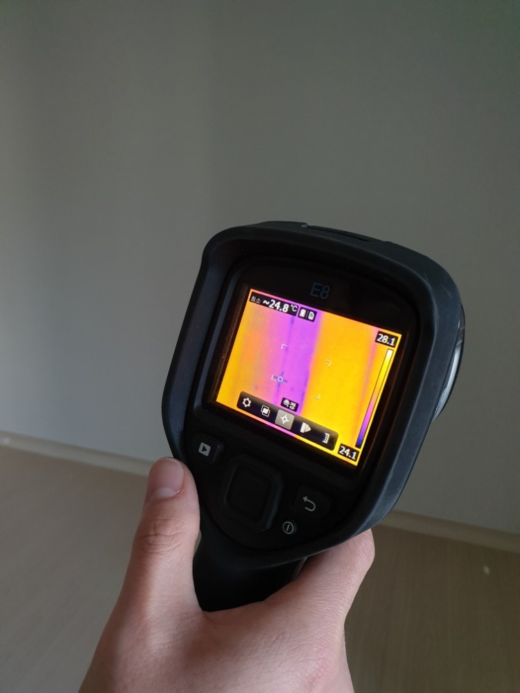 신축아파트 사전 점검 시 열화상카메라로 벽면의 온도차가 있음을 확인했습니다.