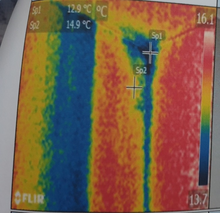 실내온도 18~19도(측정일 기온 0에서 -4도) 일때 측정한 사진과 실내온도 많이 올려 28~30도(측정일 기온 6~7도) 일때 열화상카메라로 찍은 사진 첨부합니다.