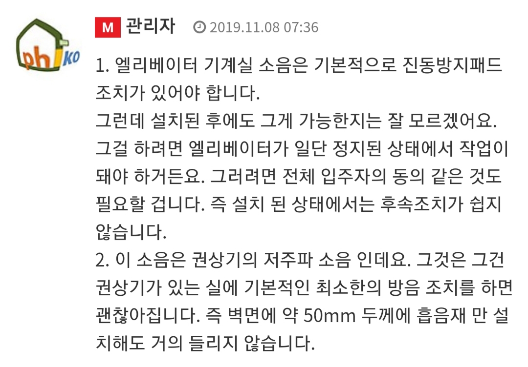 엘리베이터 소음은 사실 그 원인이 거의 유사합니다만, 보정 하시도 사실상 어렵습니다.