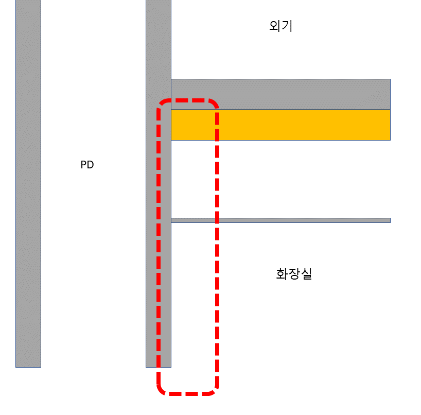 즉, 해당 PD의 천장에 단열조치가 되어 있거나, PD를 관통하는 배관에 단열조치가 되어져 있다면, PD와 접하는 세대 벽체는 단열조치를 생략할 수 있습니다.