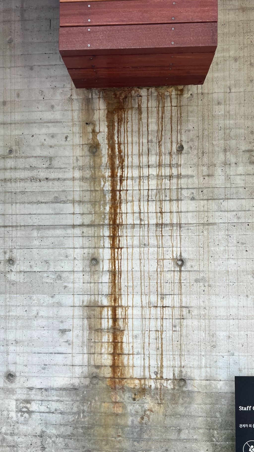노출 콘크리트 오염 제거 혹은 덮는 방법