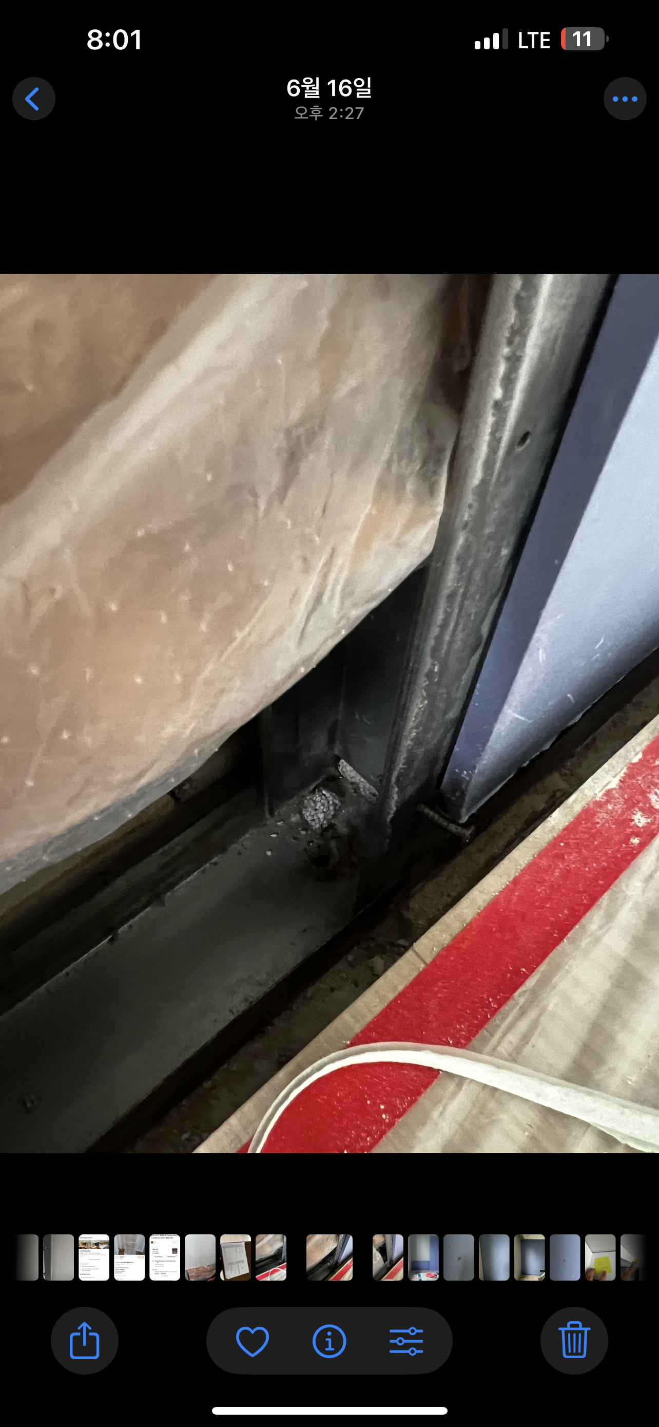 4. 석고보드를 새로 설치하는과정에서 철 프레임 아래쪽에 못이 박혀있어서(기존 석고보드를 고정하던못) 이건 그라인더 아니면 제거하기 어렵다며
