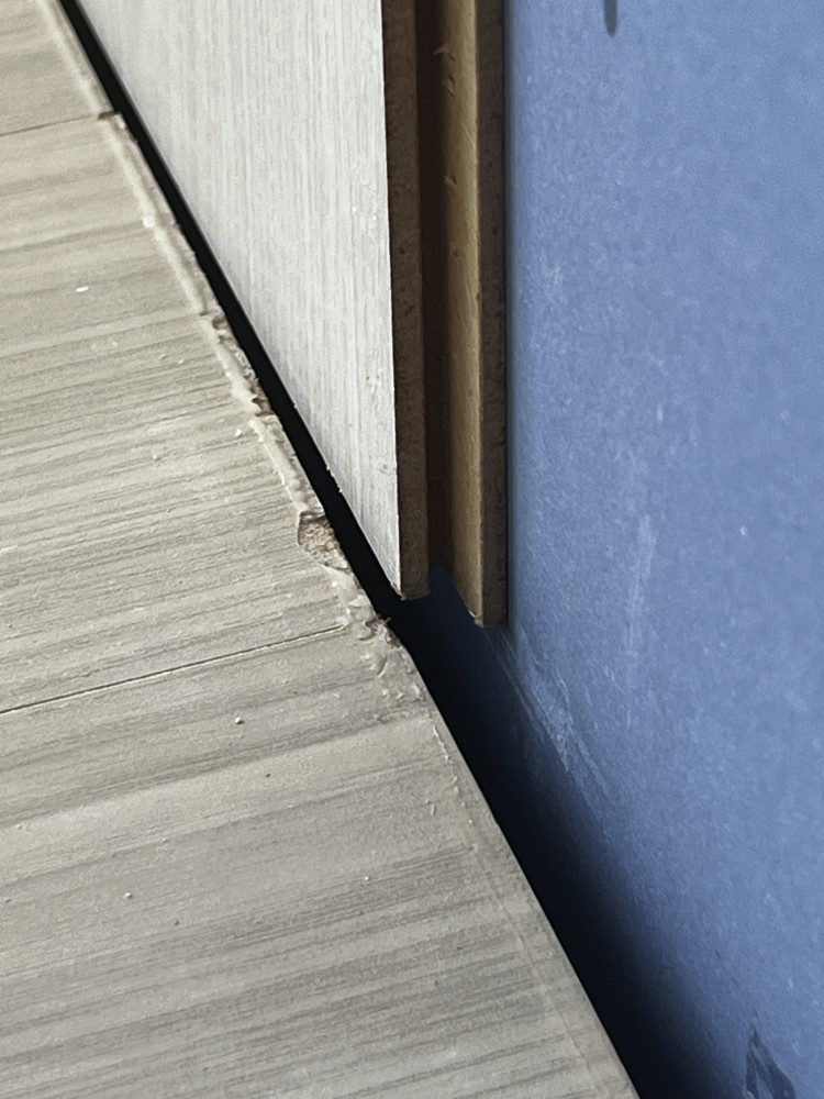 5. 새로 설치된 석고 보드 아래에는 못이있고 그아래 7센치 정도 공간이 생겨져있음