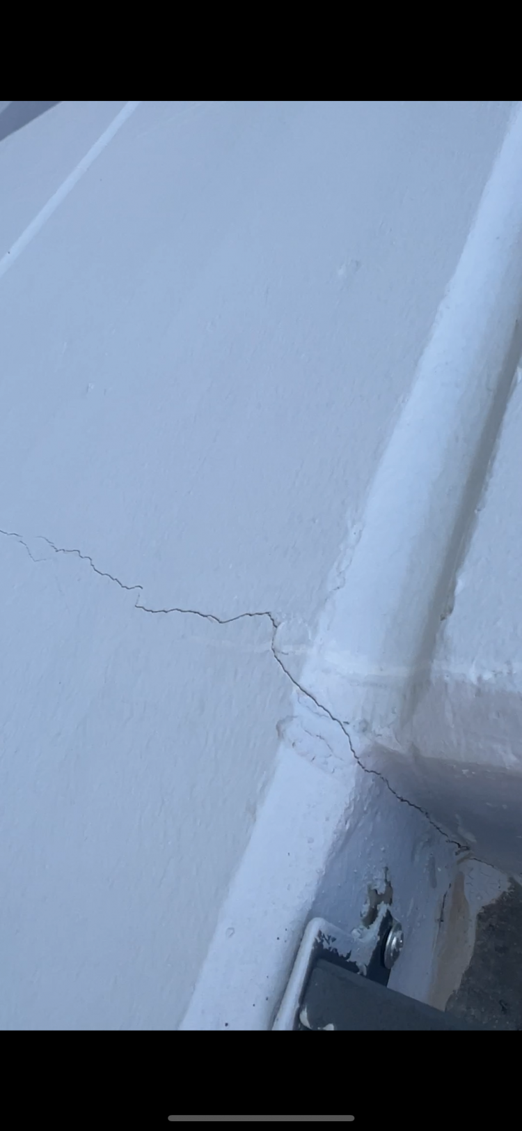 균열 부위를 V커팅 한 후에 외부용 퍼티로 메우면 되는데.. 아마 이를 떠나서 CS 센타에서 공통적으로 하는 방법이 있을 거여요. 그 것을 그냥 두셔도 무리는 없을 것 같습니다.