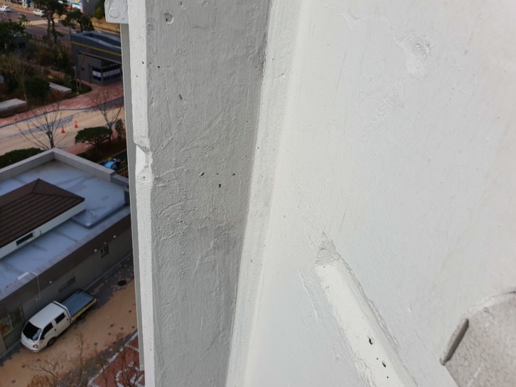 사진은 거실 창문에서 찍은 안방앞베란다, 안방쪽 외벽입니다.