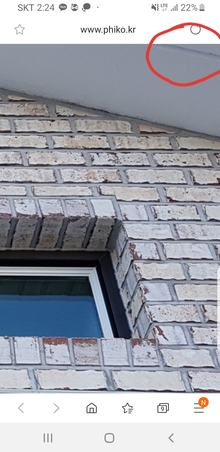 혹시나 창틀상부에있는 상인방 벽돌이 위로 치켜들고있어 빗물유입이 더심한건지 의심도듭니다.