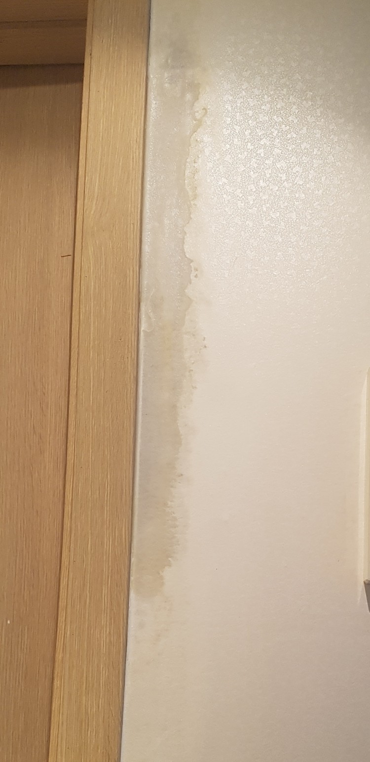 일단 벽지를 절개해서 원인을 먼저 봐야 할 것 같습니다.