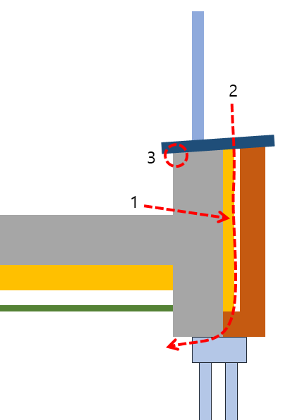 누수의 원인을 추정해 본다면.. 그림의 두 가지 경로로 압출 될 수 있습니다.