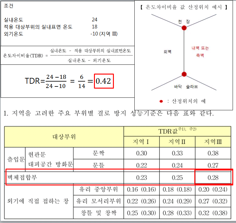 슬래브 하부 3cm지점의 반자표면을 TDR의 기준으로 한 것이고, 그렇기 때문에 천정 속은 온도가 노점온도에 가까울 것입니다. 제 기억이 맞다면...