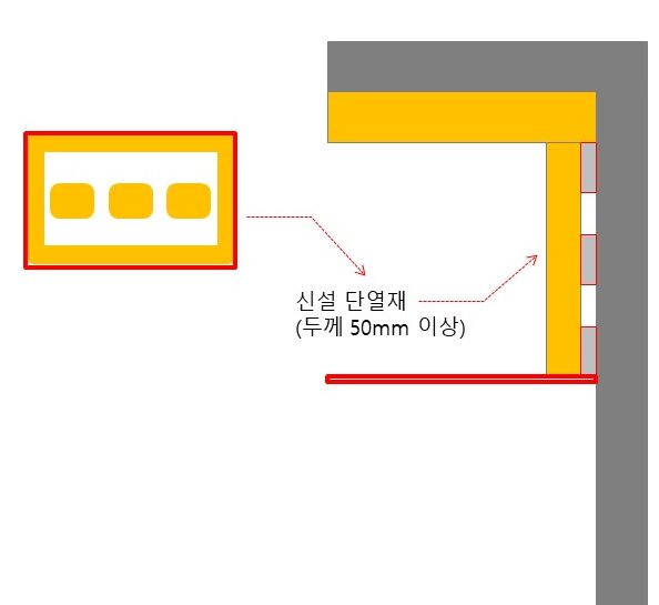 부엌과 접하는 부분의 벽체 단열 보강은 아래 그림처럼 해주세요.