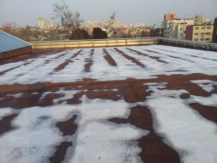 그런데 지붕층을 확인하면서 당해 건축물 최상부의 단열이 제대로 시공되지 않은 것을 쌓여 있는 눈을 통해 확인했습니다.