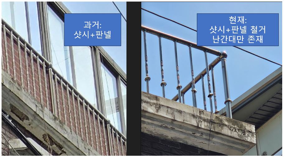 4. 샷시+샌드위치 판넬 철거 후 난간만 존재 (현재 상태)