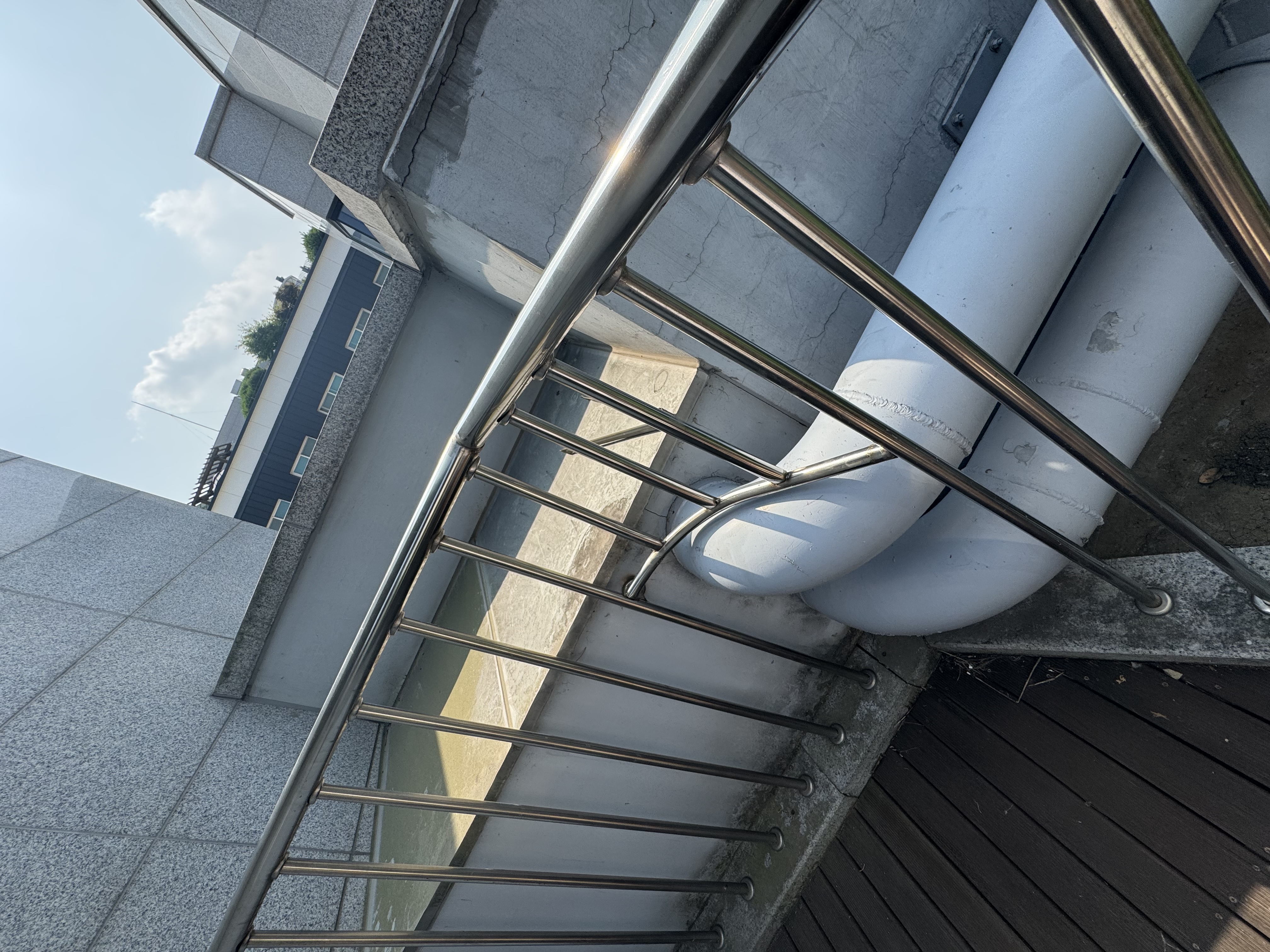 옥상(바로 위층)에 올라가 보니 냉각탑 추정 장치 부근에서 유사한 소음이 발생하고 있었습니다. (단, 정확한 원인지는 추정일 뿐입니다.)