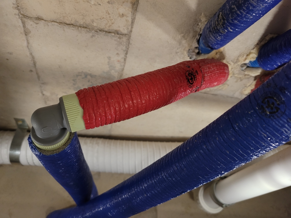 그 보다는 본문에 적어 주신 것처럼... 최초 두 집의 냉/온수 배관이 바뀌었는데,
