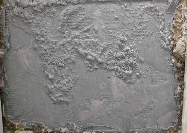 4. 그런데, 미장 작업 후 일주일이 경과하였는데, 새로이 미장을 한 바탕면을 손바닥으로 문지르면 가루가 발생하고, 일부 부스러지는 현상이 발견되었습니다.