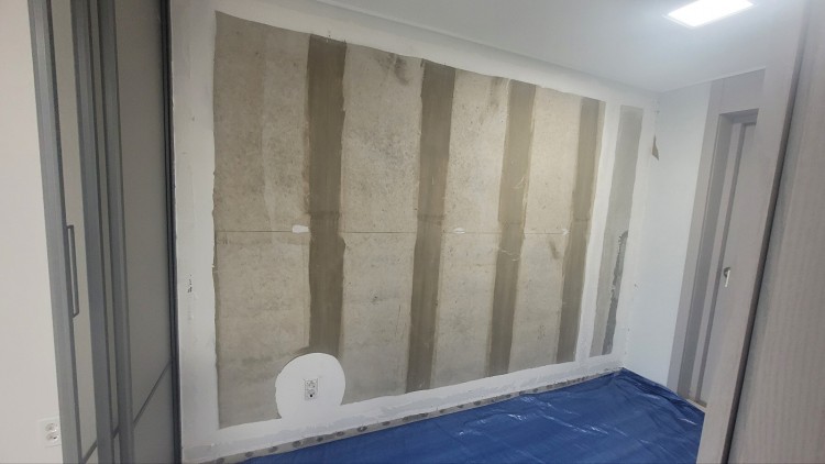 입주를 앞두고 있는 아파트에서 안방 드레스룸 벽이 휘어진 하자를 발견하여 하자보수를 위해 벽지를 볏겨둔 맨벽을 보게되었는데, 벽에는 천장부터 바닥까지 이어진 큰 크랙이 2줄 정도 발견되었습니다.