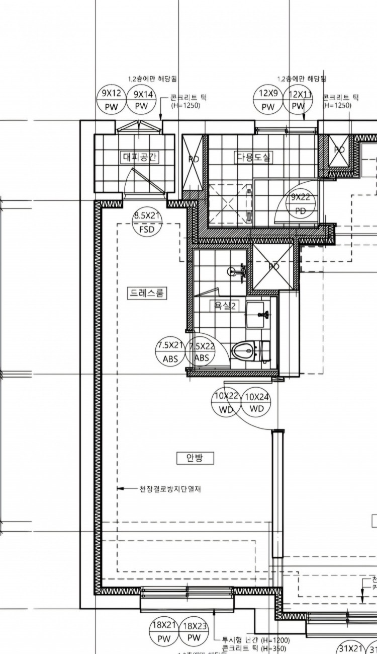 올려 주신 도면에서 드레스룸 왼쪽벽(외벽)인가요?
