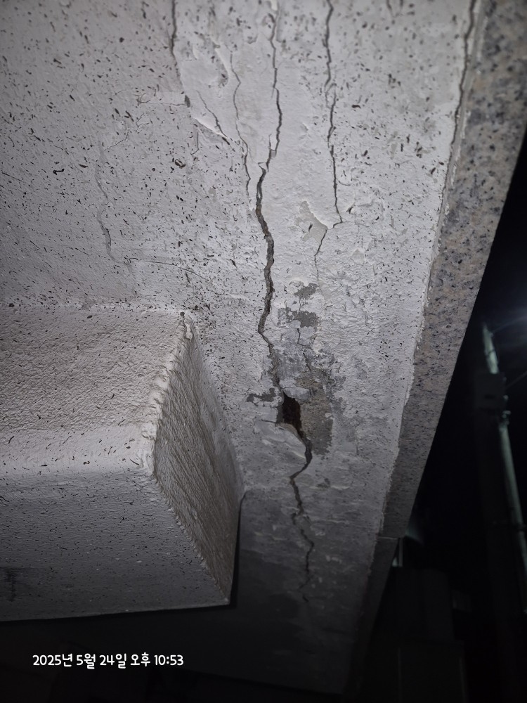 빌라주차장 천장이 누수로 인해 갈라짐도 있고 이번에 비올땐 계단쪽 외벽도 누수가있는듯하네요 벽에 물기랑 바닥 물기 등등.. 누수검사해서 정리해야할거같은데 계속이상태면 위험하겠죠?