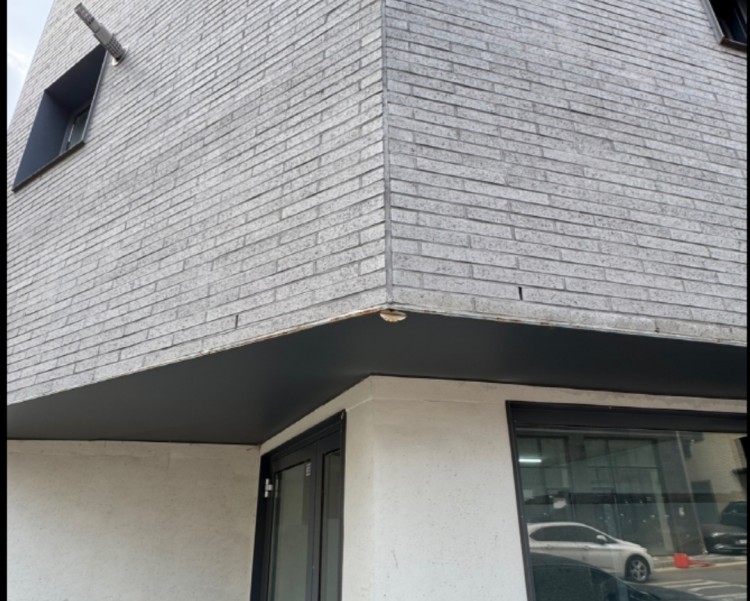현재는 벽돌 뒤로 넘어가는 빗물에 대한 고려가 없는 결과입니다. 그러므로 무언가 건전해 지려면 천장 마감 자체를 새로 해야 하던가, 벽돌 뒤쪽 위치에 타공을 해서 물이 떨어지도록 해야 합니다.