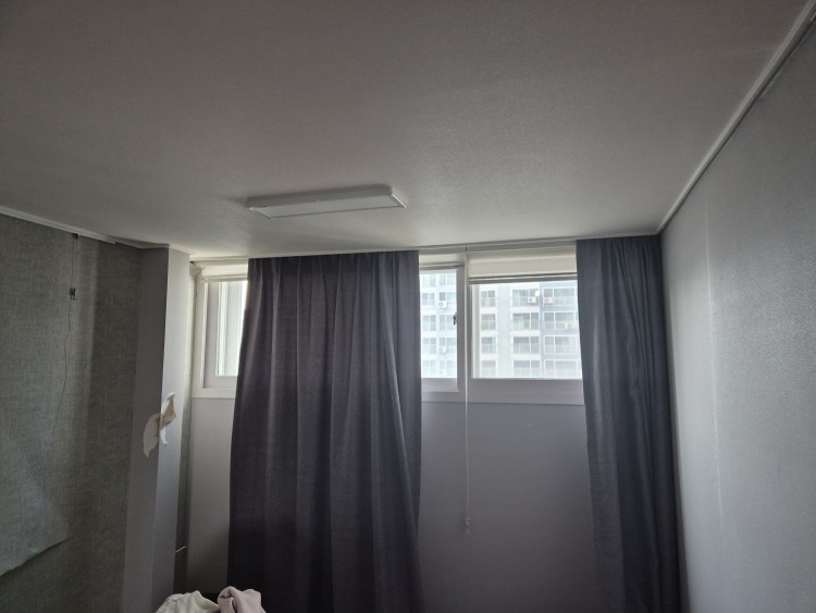 북쪽작은방확장되어있구요 반창 샤시밑에는 단열이되어있는지 석고로되었구요 왼쪽우수관있는곳은 돌출된외벽이고 오른쪽벽은 주방베란다 부분인데 양옆벽은 단열이 안되어있는상태입니다