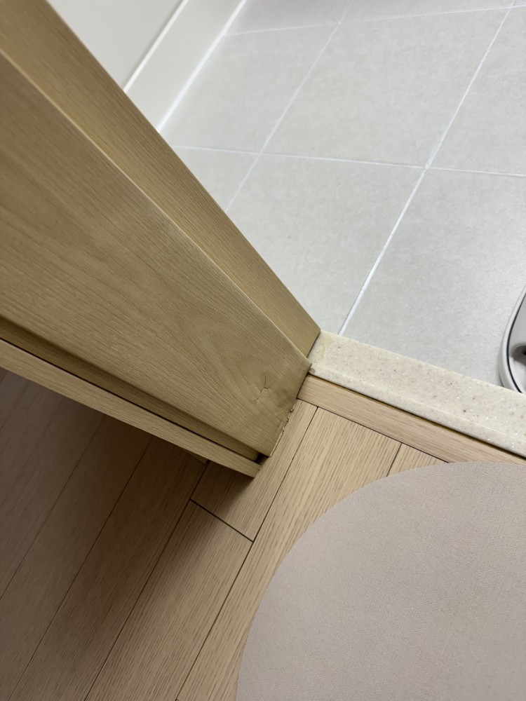 아래 마루도 보면 바닥이 물을먹어서 들떠있는데 사진상 왼쪽부분부터 마루가 떠있는게 심하고 문틀도 왼쪽에있는것이 더 심합니다.