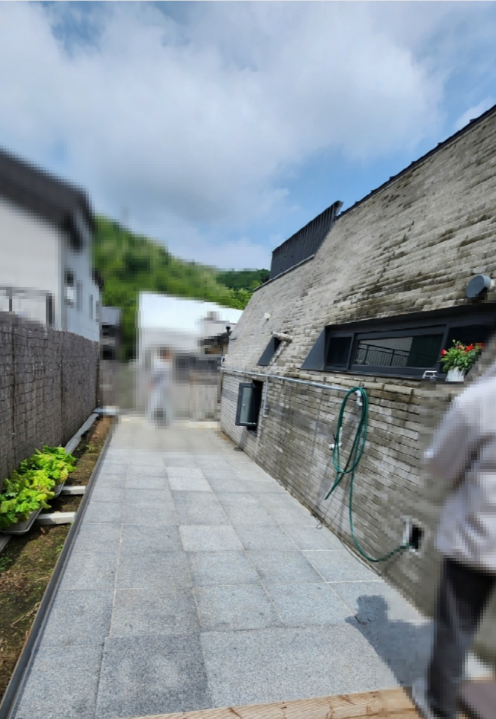다만.. 벽돌을 먼저 쌓고 방수를 했다면 훨씬 일찍 부터 누수로 시달렸었기에.. 이 것을 해결하기 위한 여러가지 조치를 했던 흔적이 외벽에 보여야 하는데.. 테라스에 면한 벽돌면에서는 딱히 그런 흔적이 보이지 않는 것으로 보아서.. 다행히 방수를 먼저하고 벽돌을 쌓았을 것이라 추정될 수 있습니다.