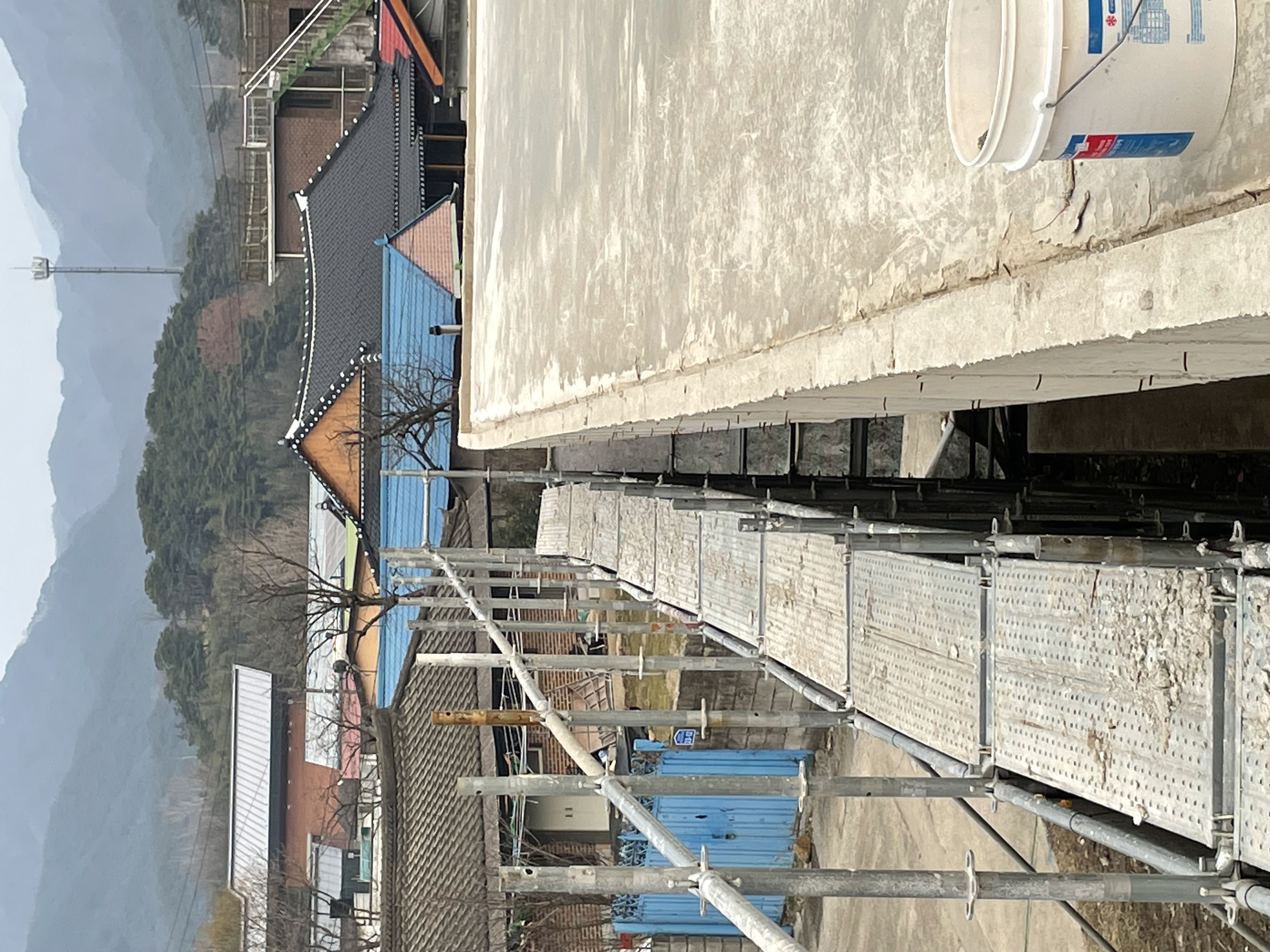 만약 인접대지경계선까지의 여유가 있다면 아연도금 각파이프와 CRC보드를 이용하여 면을 새롭게 만들어 줄 수는 있습니다. 여유가 없다면 달리 방법이 없기에 담당 건축사와 구조기술사가 판단을 할 수 있도록 의뢰를 하셔야 합니다.
