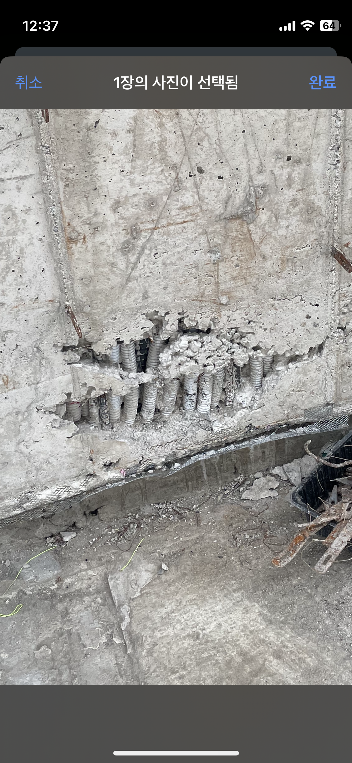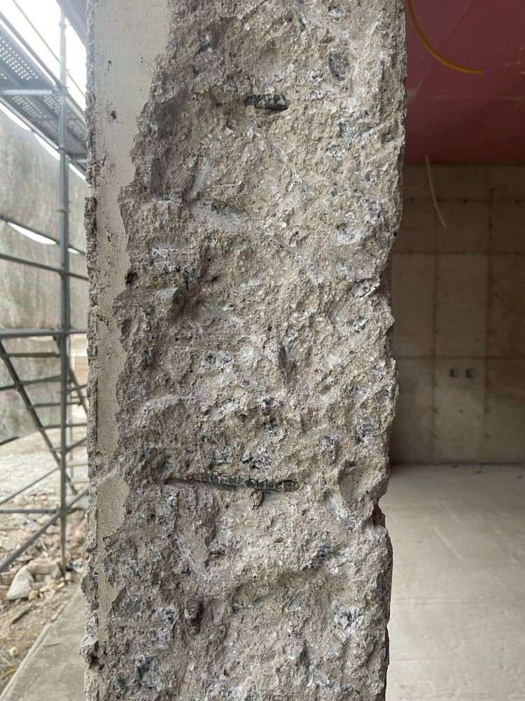 가. 기둥 파쇄한 것 : 기둥은 피복두께가 다른 부위보다 중요하기에 지금 상태에서 마감을 할 수는 없습니다.