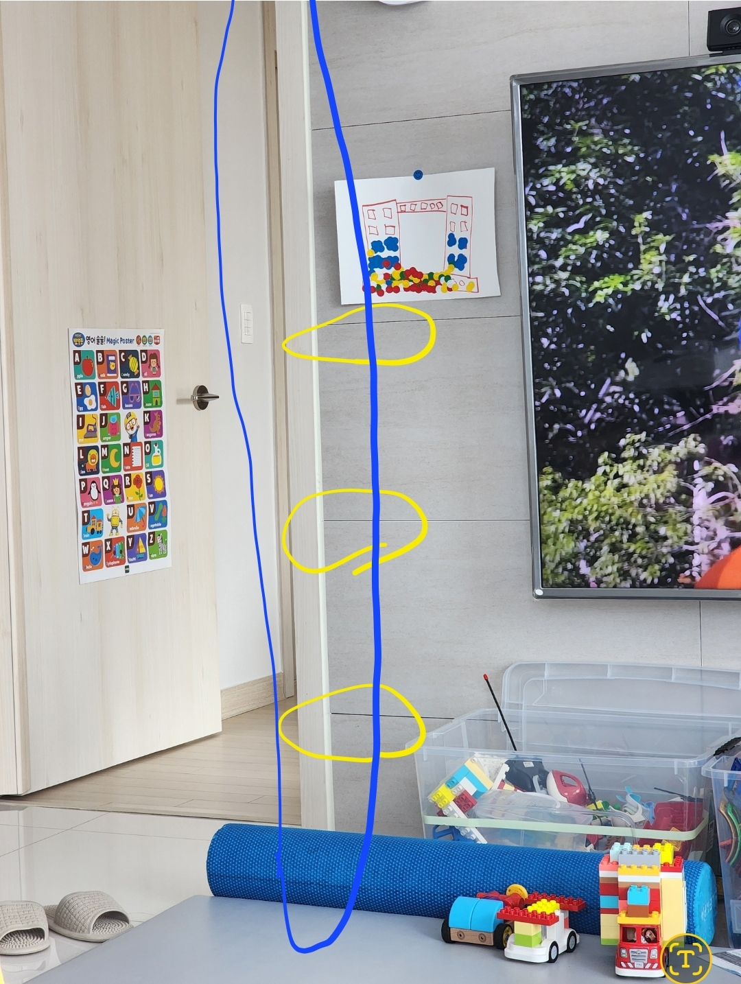 파란색 몰딩을 교체했다했습니다