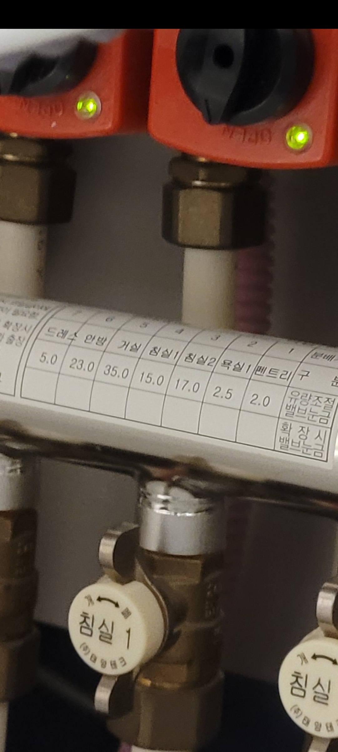 이 경우는 배관 도면등으로 확인이 안되고, 열화상카메라를 이용해서 분배기로 부터 거실로 이어지는 배관이 정상적으로 설치되어 있는지 봐야 합니다.