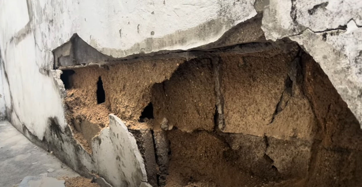 일부 황토블럭(?) 등이 사용된 것으로 보이며, 오랜 시간 동안 수분을 먹고 균열틈새로 유입된 빗물로 인해 유실된 것으로 보입니다.