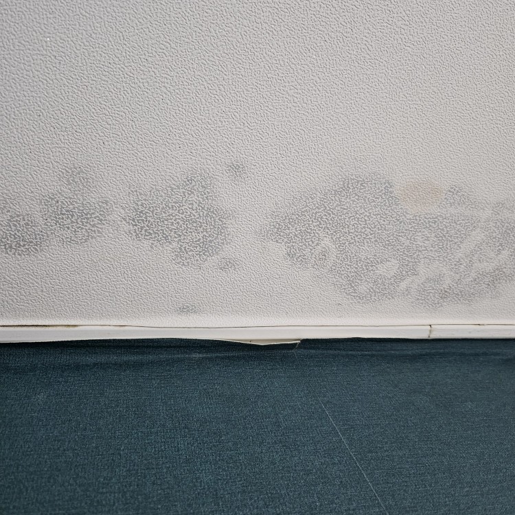 - (24년 8월) 첨부 사진 얼룩 중 오른쪽 부분이 생긴 것을 발견하였으며, 손으로 만져보았으나 물기는 묻어 나오지 않아 단순 곰팡이 인가하여 환기와 제습에 더 신경 쓰며 지냈으나,