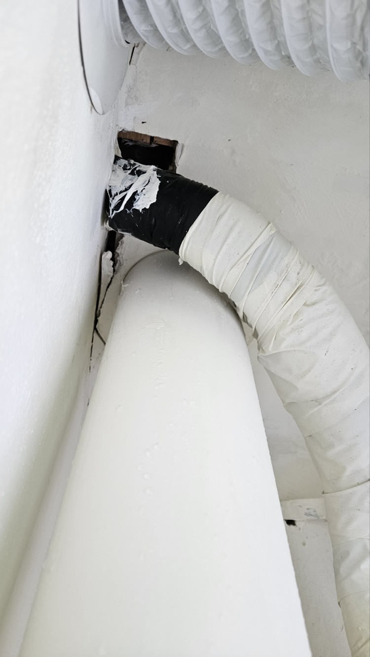 천장은 젖은흔적 없이 깨끗하며 아래쪽은 물이 흐르는데 위쪽은 물이 송글송글 맺혀있습니다.