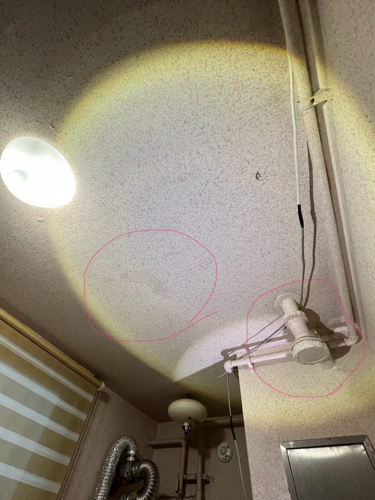 아랫집에 내려가 보니 저희 집 세탁기 아래쪽 천장과 배수관에 물맺힘이 있었어요