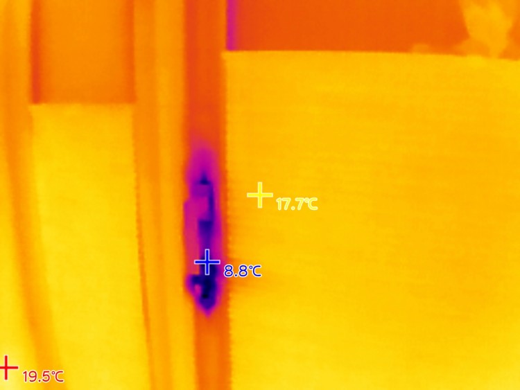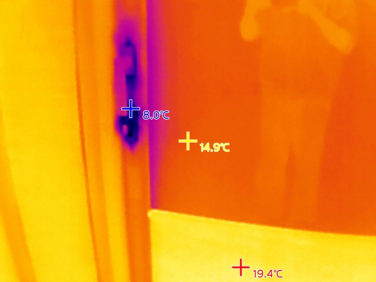 일단 외측 열쇠구멍쪽에 테이프를 붙이긴했지만 여전히 실내측에 강한 누기가 느껴집니다.