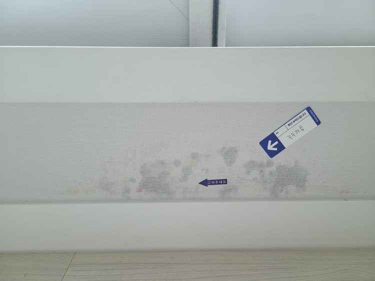 거실 통창 아랫부분, 걸레받이 위로 곰팡이가 피어있고 축축합니다. 분양권전매로 하자발견이 늦었는데 이거 제가 어떻게해야 제대로 신속하게 처리받을 수 있을까요