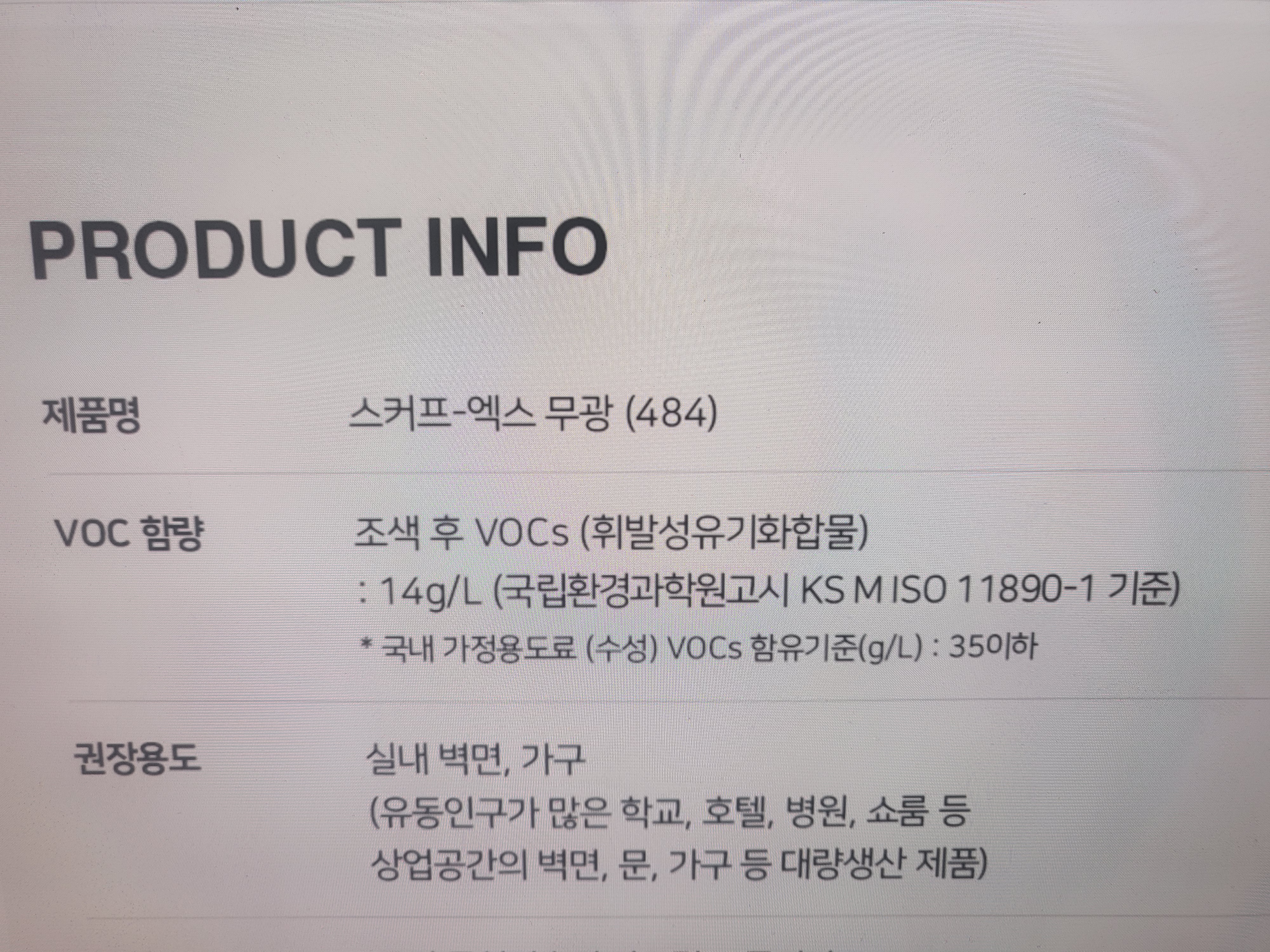 01.한국벤자민무어 홈쇼핑에서 스커프엑스VOC함량표시