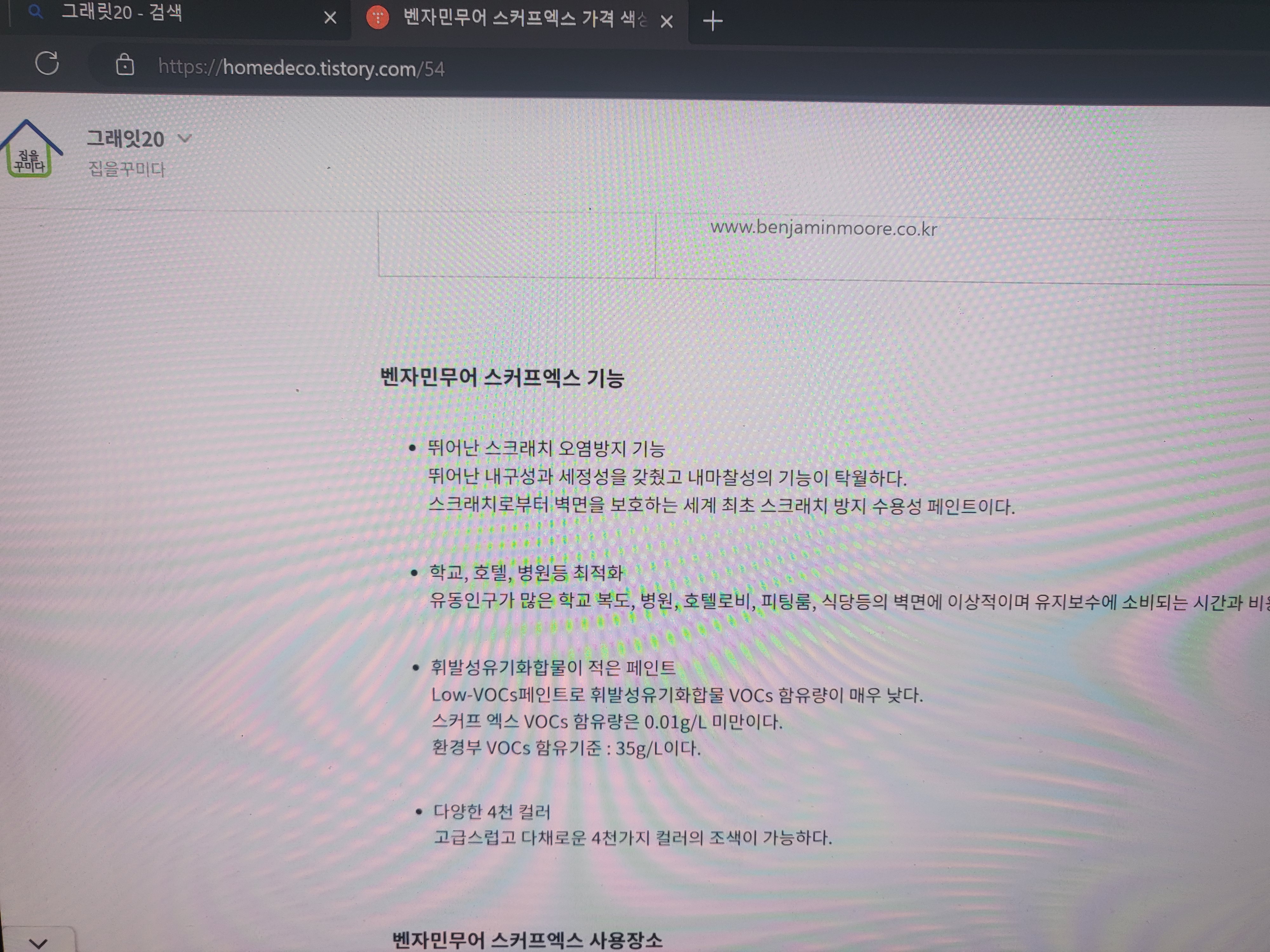 01.제가 벤자민 무어 스커프 엑스 경험담 스프레이 시공시 매우 기분 나쁜 냄새발생 타브랜드 덜 냄새납니다