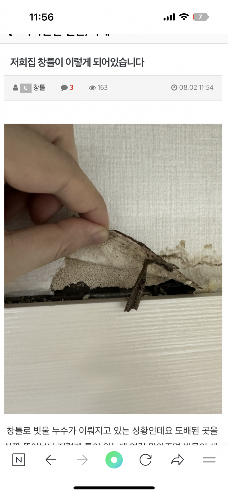 창틀 상부 틈 및 우측 물고임, 누수 하자 보수 방법