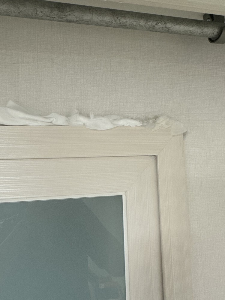 저희집 침실 창틀이 상부에 틈이 있습니다 그치만 이 왼쪽에는 틈이 없어요