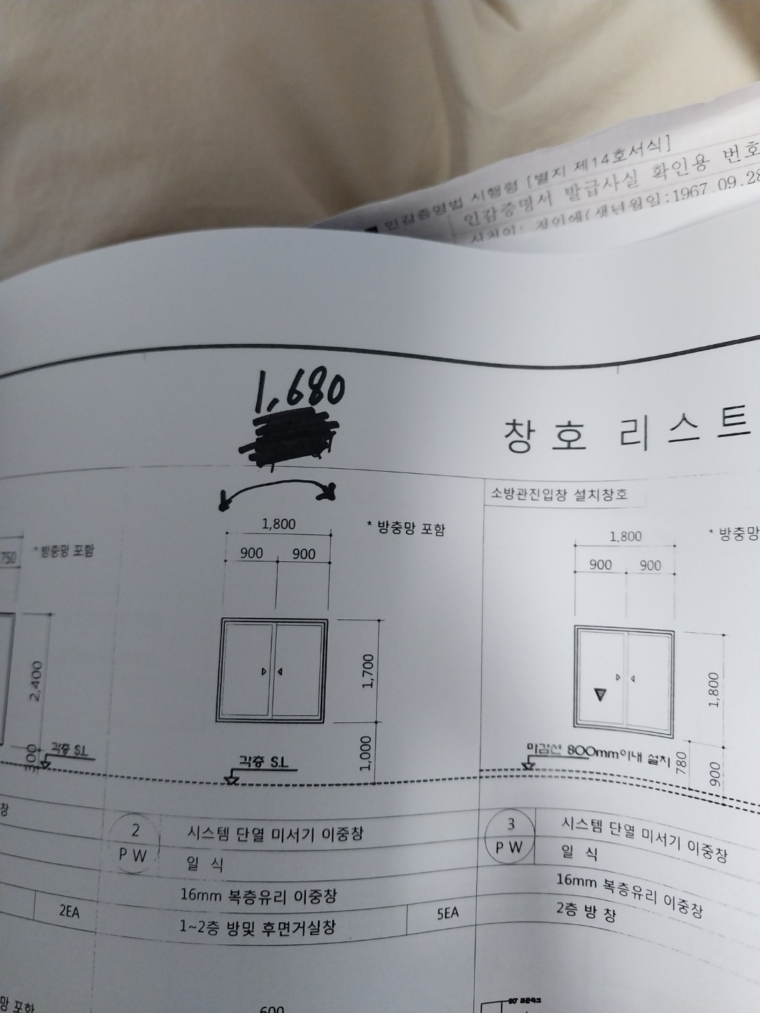 설계도를 확인해보니 창호가1800인데 시공은1680로 되어있어요.