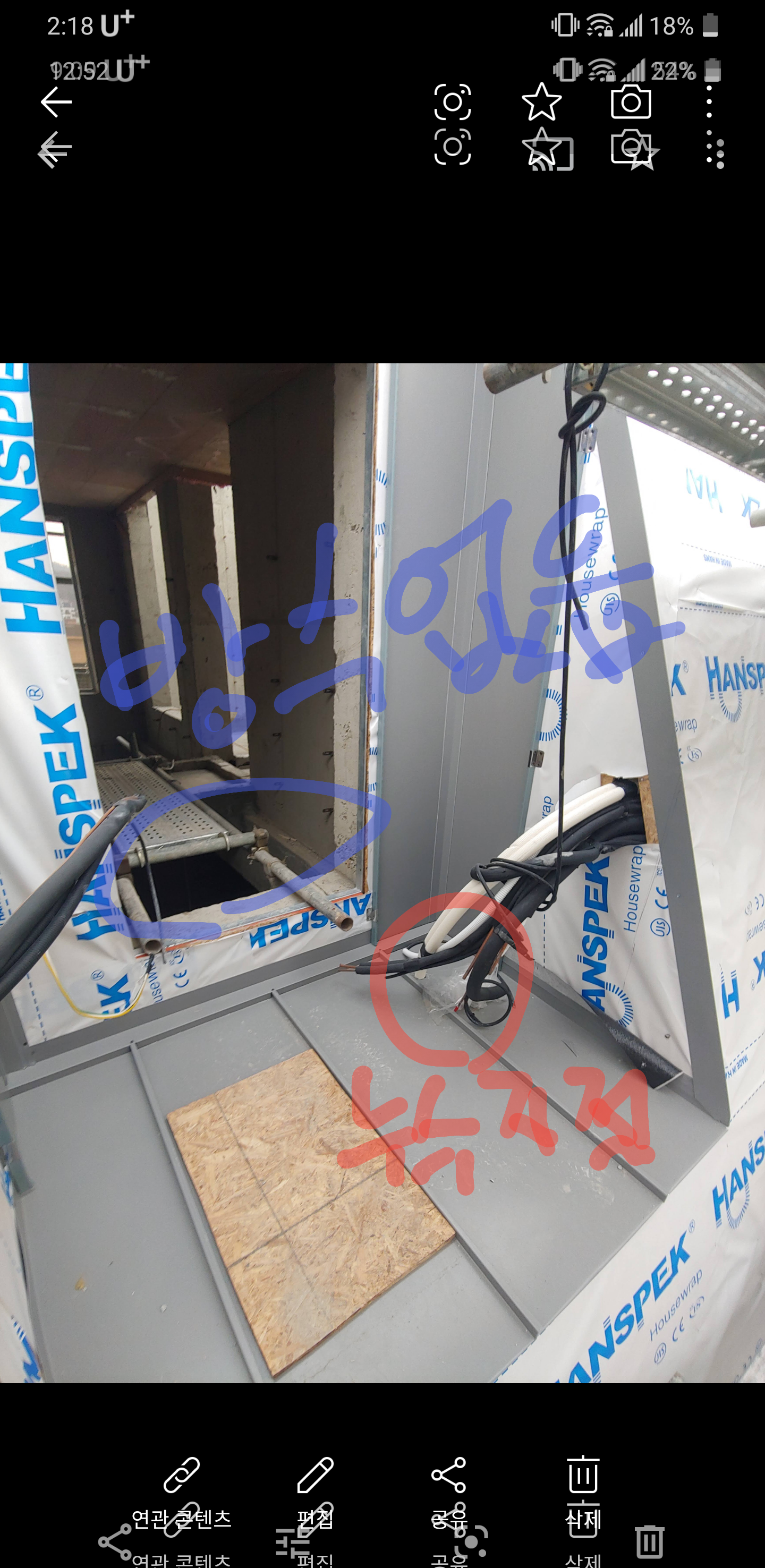 한가지 중요한 사실을 발견했습니다. 사진과 같이 실외기실 진입 발판에 방수랩이 없습니다